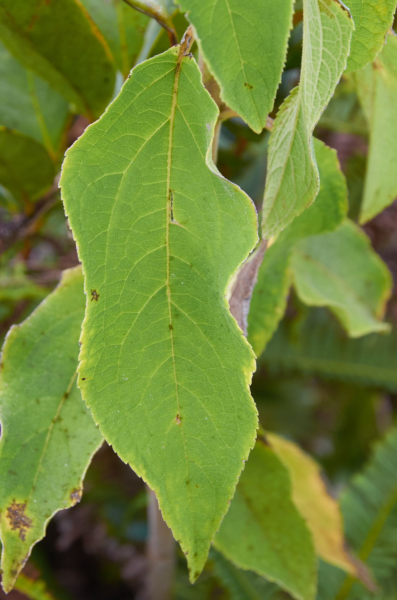 Commentaires : Arbrisseau pubescent à feuilles opposées vert jaunâtre, petites fleurs blanches et fruit rouge-orangé à maturité, introduit à Maurice depuis la fin du XIXème siècle. Son nom vernaculaire provient du rôle joué par l’Oiseau condé ou Bulbul orphée (Pycnonotus jocosus) dans sa dissémination. La propagation a été telle qu’elle a menacée l’agriculture mauricienne. L’introduction successive de deux insectes s’attaquant à la plante a permis de stopper l’invasion et de stabiliser la population.