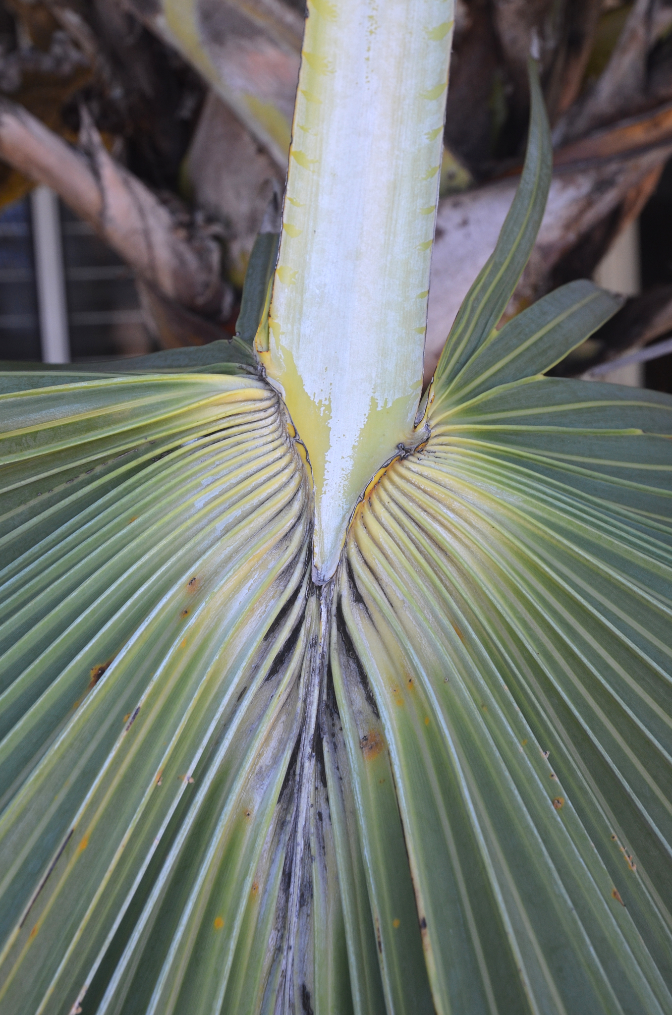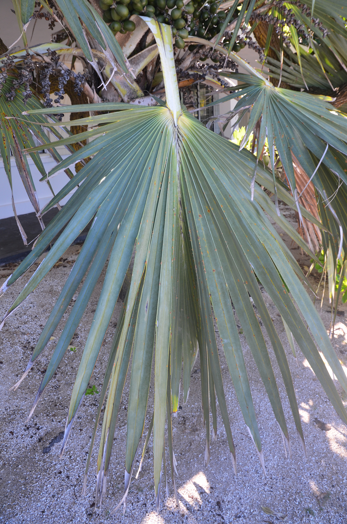 Commentaires : Palmier aux feuilles en éventail bleu-gris. En danger d’extinction. Caractéristique de la forêt côtière, on le trouve à l’état sauvage presque uniquement dans les ilets de nord notamment à l’Ile ronde. Il est utilisé à des fins ornementales.