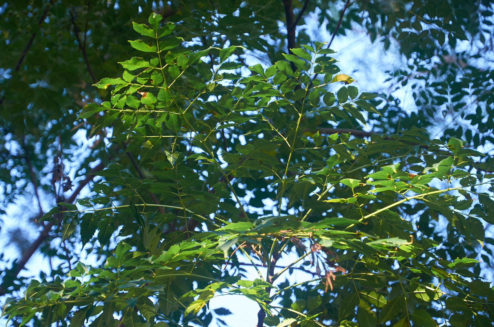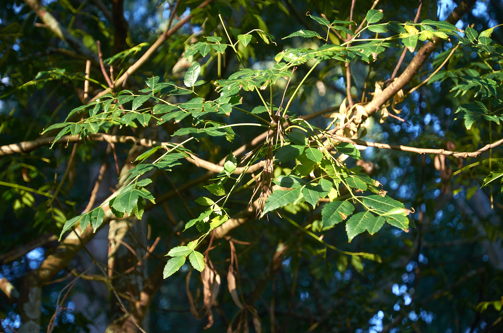 Décidu, ses feuilles pennées aux folioles opposées, effilées au sommet, atteignent 40 cm de longueur. Les fleurs, très odorantes, de couleur lilas et pourpre, sont réunies en grandes inflorescences. Elles sont suivies de fruits qui deviennent jaunâtres et persistent longtemps sur l’arbre.