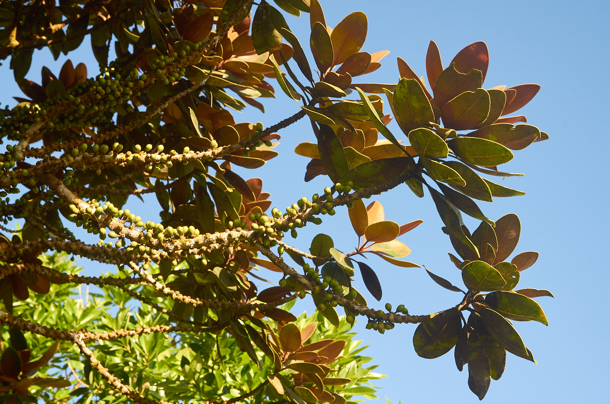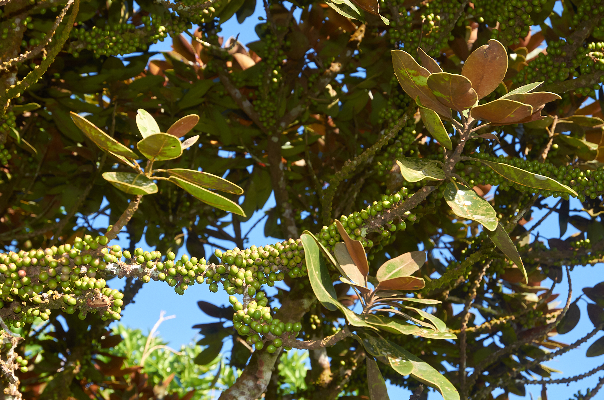 La pubescence rousse présente sur les jeunes feuilles permet (entre autres) de le distinguer du Manglier vert, Sideroxylon cinereum.